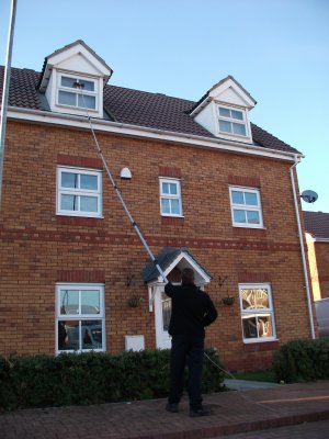 The system works by using purified water that is stored in a tank in our van. This water is pumped through hoses and telescopic poles to jets mounted within the brush heads. In a three stage process the glass is washed, gently scrubbed and rinsed. The windows are left wet after cleaning but dry naturally to a clear "smear free" finish. You should be aware that after the initial clean, there may be some watermarks left due to previous residue. These will however be removed on subsequent washes. With traditional window cleaning methods, soap residue is left behind and so attracts dirt back onto the window. By using pure water, all dirt and chemicals that come into contact with it can be absorbed, leaving a sterile surface and long lasting results.